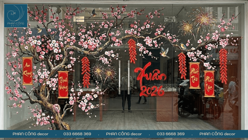 Nếu bạn đang tìm giải pháp trang trí kính Tết mới mẻ, hãy cân nhắc dịch vụ vẽ tranh kính cây đào ngày Tết tại PHAN CÔNG decor. Đội ngũ sẵn sàng tư vấn và thi công theo nhu cầu thực tế.