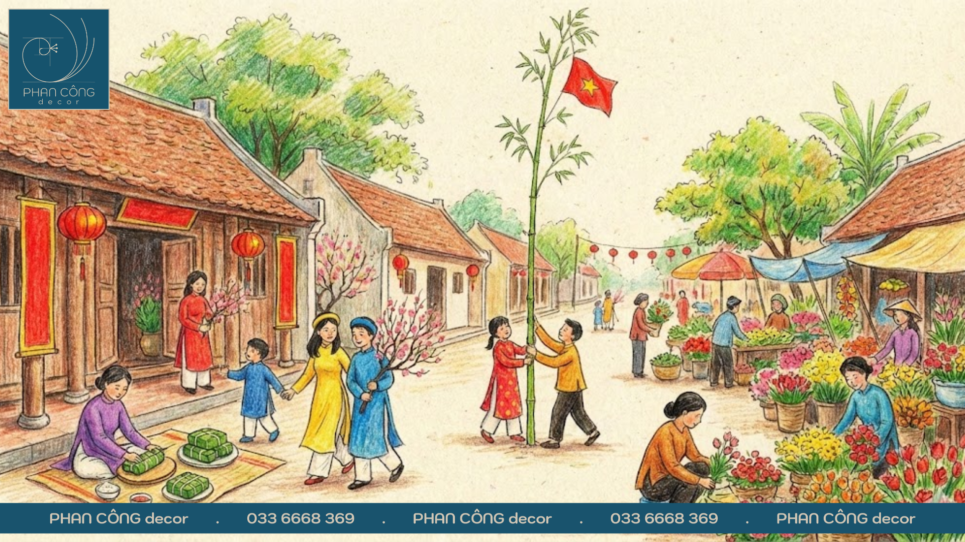Cách vẽ tranh ngày Tết đơn giản mà đẹp luôn là chủ đề được nhiều người quan tâm mỗi khi xuân về. Một bức tranh Tết đúng tinh thần giúp không gian ấm hơn, vui hơn và mang nhiều ý nghĩa may mắn. Bạn không cần kỹ năng phức tạp, chỉ cần nắm đúng cách là đã có thể tự tay hoàn thiện tranh trang trí. Bài viết này PHAN CÔNG decor sẽ hướng dẫn từng bước cụ thể, dễ làm và phù hợp nhiều không gian khác nhau.